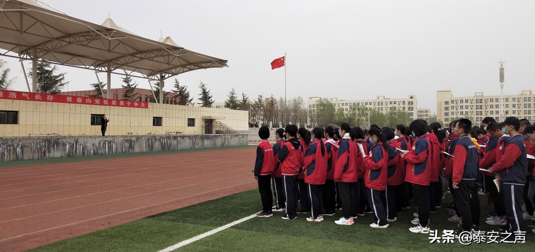 清明将至,气清景明。3月29日,泰安一中2019级全体师生迈着坚定的步伐,齐聚于学校西操场,举行“卫国戍边英雄浩气长存•青春向党我辈勇于争先”主题升旗仪式。